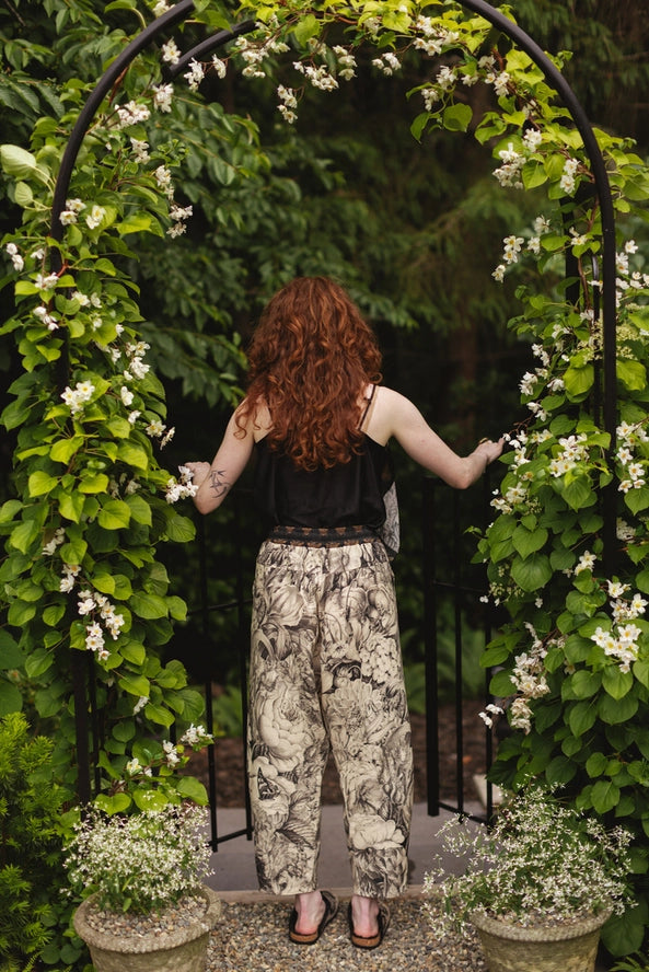 They are made from a natural blend of linen and bamboo viscose, and feature a drawstring front, elastic waist back panel, pockets, cropped length, and a flattering lantern hem. The custom-woven fabric is easy-care and so comfy.