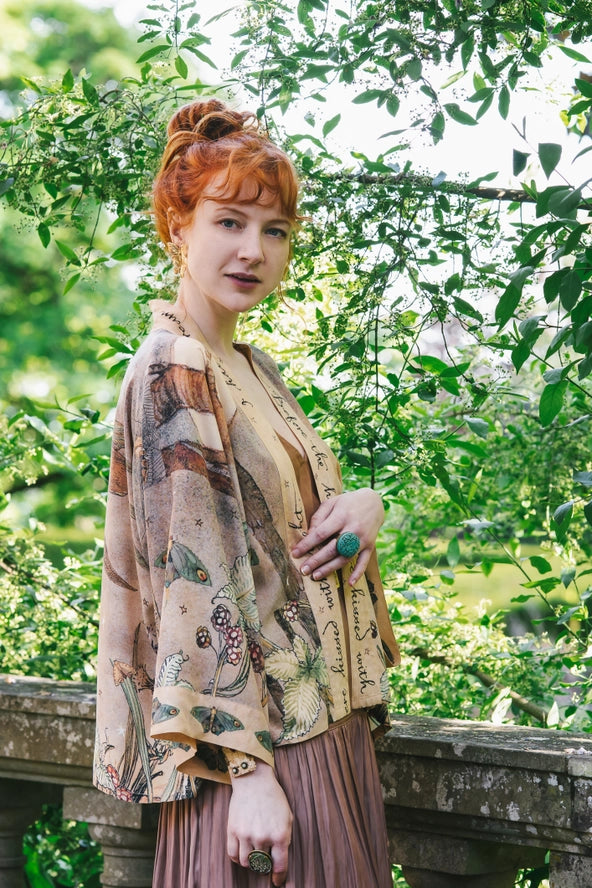 Introducing Lovelight, an enchanted woodland fairytale that features the magical work of artist Charles van Sandwyk. A world-renowned illustrator and writer. We are deeply honoured to be collaborating with Charles, whose work has been a source of inspiration for us! This design was created using a collage of several pieces of Charles’ work, including a majestic guardian swallow and a delicate watercolour moth. The whole collection is edged with Charles’ original poetry. Lovelight is a tribute to the radiance each of us carries within — the love, empathy, and creative spark.