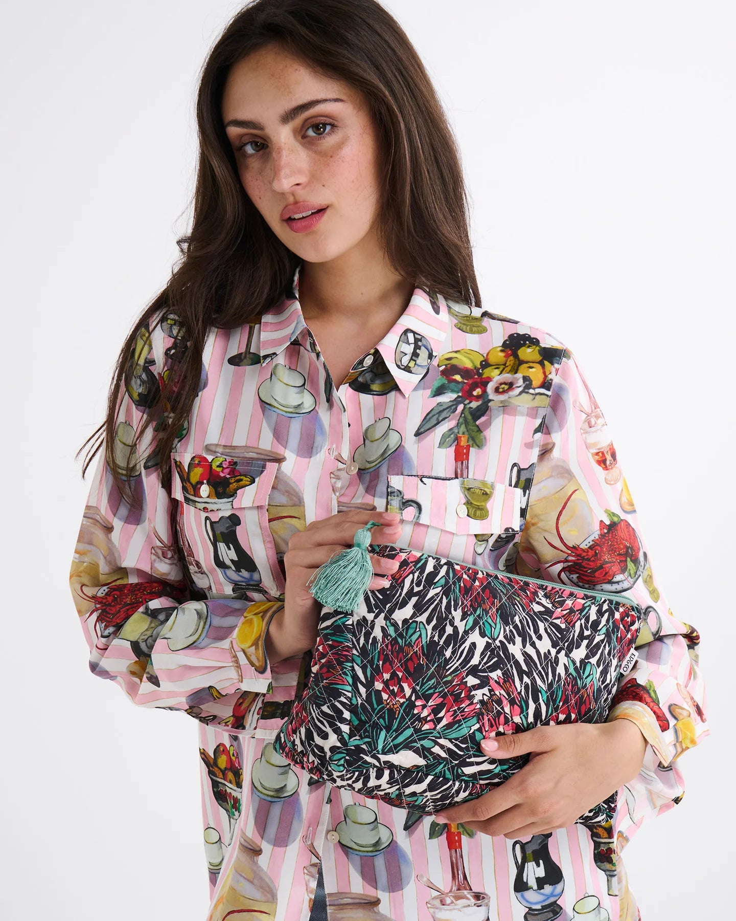 With bold red and soft pink proteas, lush green leaves, and striking black accents, it brings Preston’s iconic florals straight into your daily routine. Crafted from soft, quilted cotton, it’s perfect for makeup, skincare, or those little bits and bobs you can’t live without.