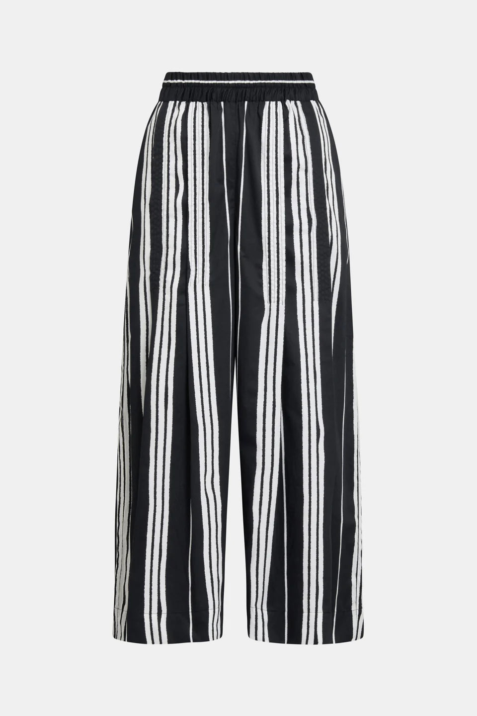 The Reza Pants are a high-rise pant featuring a wide-leg silhouette in 100% organic cotton. They are pull-on style with a wide elasticated waistband for a comfortable and easy fit. These pants are finished with stitched down tucks from the waist adding extra volume in the leg. Style with the coordinating Reza Shirt for a contrasting yet coordinated look.